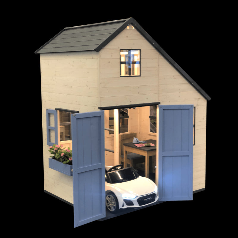Casuta de gradina Lime Lodge cu tobogan, leagan dublu si bucatarie (M28L_K), Wendi Toys