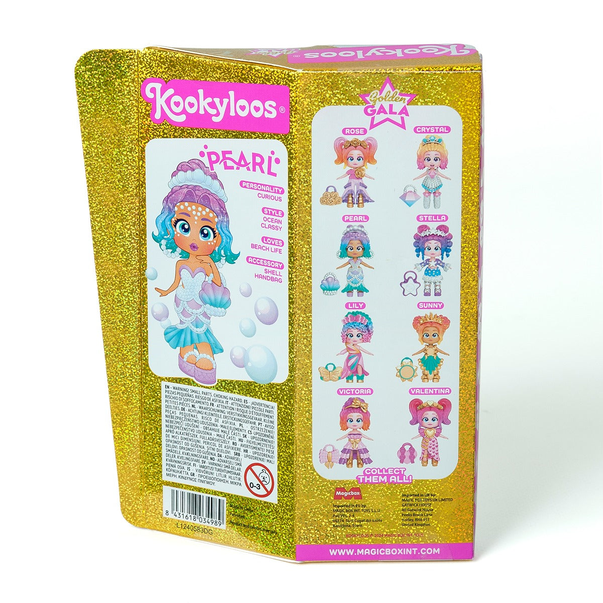 Descoperă lumea magică a KookyLoos cu papușa Golden Gala! Cunoaște-o pe Pearl: curioasă și mereu îndrăgostită de stilul elegant cu accente din ocean, Pearl se bucură de viața la plajă și nu uită niciodată să își ia cu ea geanta draguță în forma de scoică.