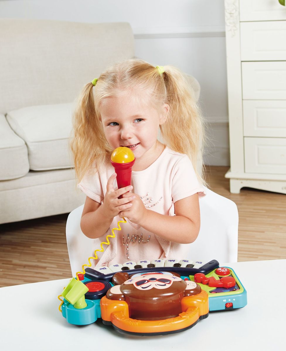 Descoperă magia muzicii cu Pianina Bebe Maimitica DJ cu Lumini, Sunete și Microfon, marca Hola! Acest instrument este conceput pentru a stimula curiozitatea și creativitatea micuților, oferind o experiență de joacă educativă și distractivă.